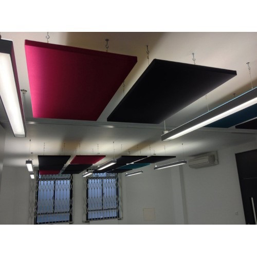 Mandi Acoustic Ceiling Clouds are a quick and easy solution for a variety of applications including Offices, Conference Rooms, Home Entertainment, Teleconferencing, Videoconferencing, Broadcast and Recording Studios, Restaurants and more. These may be used in any space that needs a quick and effortless acoustical solution.