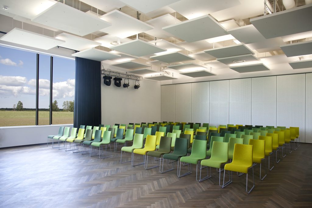 Mandi Acoustic Ceiling Cloud allows you to horizontally suspend sound absorbing panels to reduce echo and reverberation. These clouds come in 60 different colors, and 2 thicknesses.